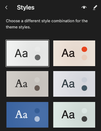 Each theme will come with several different styles. While you can often edit/change styles on individual blocks, this lets you modify the global colors, fonts, and layout of your site for a consistent look and feel. The styles can even extend to how various blocks are styled, so there’s quite a bit of variety available at just the click of a button.